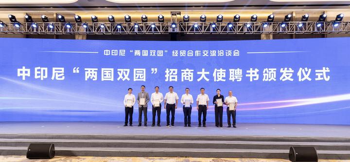 项目引进“开花结果”,源于社会各界对招商引资的大力支持、积极贡献。为充分汇聚有社会影响力、行业号召力的各界优秀力量,吸引更多优质企业参与中印尼“两国双园”开发建设,本次洽谈会上,福建淼天汇食品有限公司总经理林峥嵘、福建御冠食品有限公司董事长林兴、三林集团上海总部总裁程光、胜田(福清)食品有限公司副董事长施捷、福建海洋可持续发展研究院副院长游伟伟、中印尼经贸对接小组成员游时杰等6位代表,受聘为中印尼“两国双园”招商大使。今后,他们将为“两国双园”招商引资当好桥梁纽带、贡献更大力量。