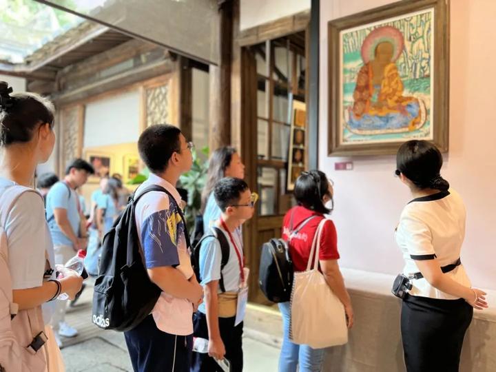 营员们观看“雪域漆彩——中国唐卡漆画创新实践成果展”