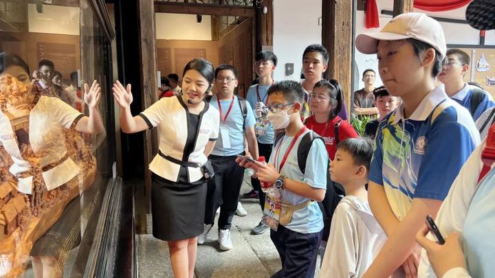 7月16日上午,参加由福建省文化和旅游厅、省归国华侨联合会主办的“青春同行·福建有约”——2023 年海外青少年研学营营员来到福建省非遗博览苑参观学习。