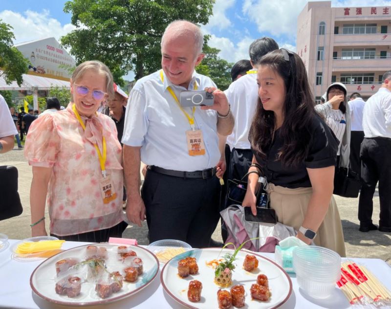 7月21日,德国、新加坡、土耳其、马来西亚、瓦努阿图等多国驻广州总领事及领馆代表齐聚广东省云浮市郁南县,究竟所为何事?土耳其驻广州领馆卡德利·伊奥卢(Kadri Eroğlu)及夫人边拍照留念,边开心说很好,到底是什么美食惹得外宾们垂涎?