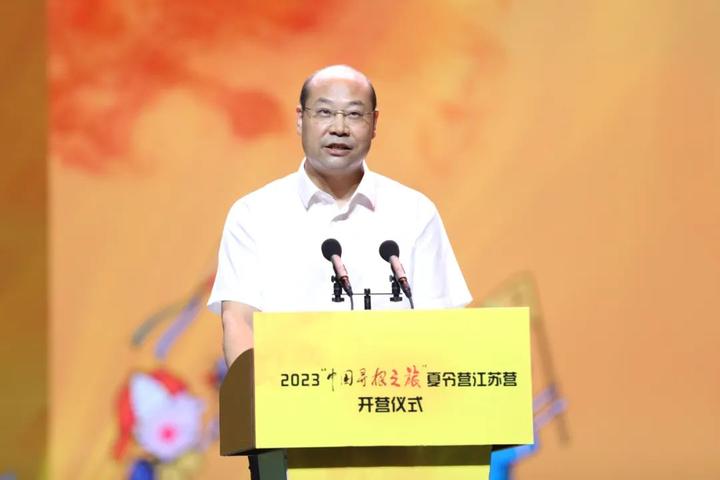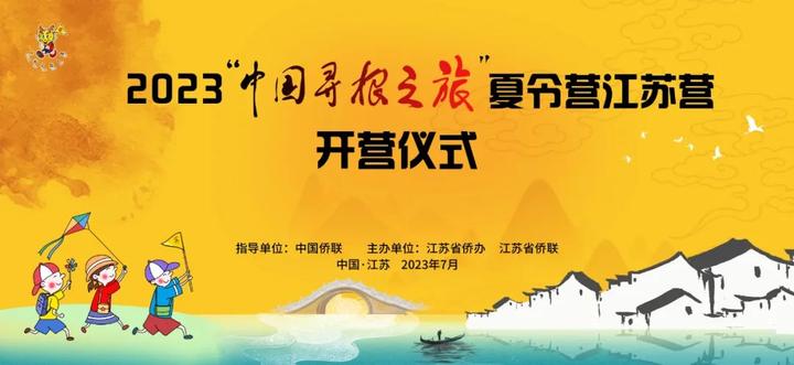 7月18日,2023“中国寻根之旅”夏令营江苏营在南京市艺术小学举行开营仪式。来自11个国家和地区的参营营员和领队,南京市有关学校师生代表,海内外新闻媒体记者等近500人出席仪式,仪式由省侨联副主席艾卉主持,同步向全球华侨华人直播,截至发稿网络点击量近200万。省委常委惠建林,省侨办、省政府新闻办、省教育厅、省文旅厅、省体育局等省和南京市相关部门负责同志出席开营仪式;省侨联主席刘标在开营仪式上致欢迎词。