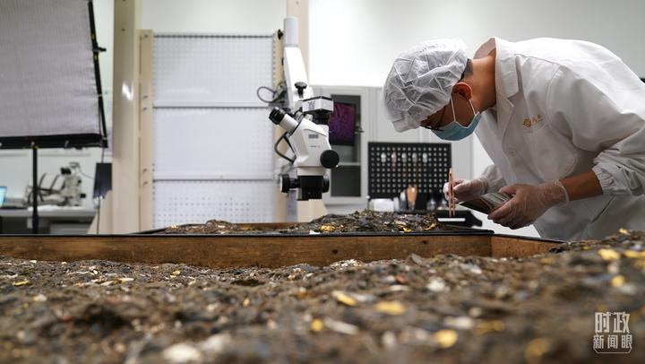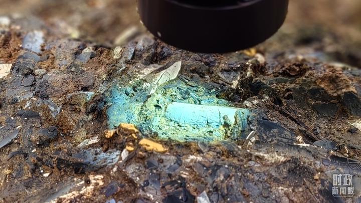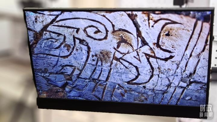 △显微镜下,三星堆文物的纹路清晰可见。(总台央视记者王萌萌拍摄)