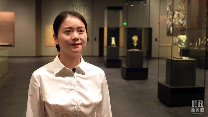 △当天现场负责讲解的三星堆博物馆公众服务部程静。(总台央广记者马喆拍摄)