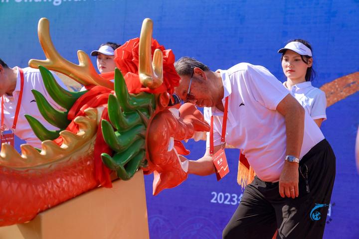 上海世界华人龙舟邀请赛创办于2009年,至今已成功举办十一届,是目前国内唯一一项以海外华人为主体参加的龙舟赛事。在开幕仪式上,中共上海市委统战部副部长房剑森,中国龙舟协会副主席、中国侨联原副主席王成云,上海市体育局党组成员、一级巡视员、上海市体育总会常务副主席赵光圣,中共青浦区委常委、统战部部长张得志,中共青浦区委常委、宣传部部长陈建国,青浦区人大常委会副主任高健,青浦区人民政府副区长张彦,青浦区政协副主席徐孝芳,中国龙舟协会秘书长、国家体育总局社会体育指导中心全民健身事业部副主任何懿共同上台为祥龙点睛,寓意来年风调雨顺、国泰民安。