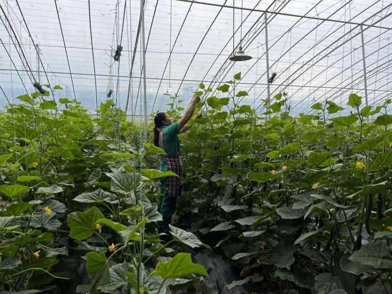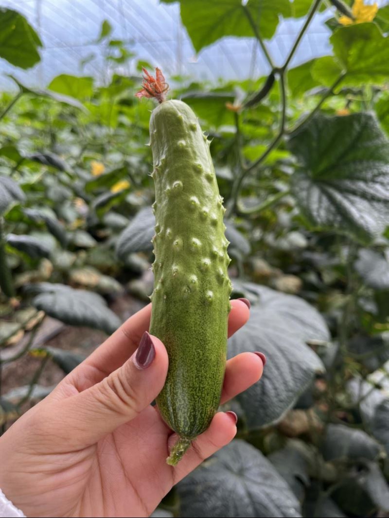 (园区内的果蔬摘下即可食,品尝着刚刚摘下的新鲜黄瓜,其香脆爽口的口感和清香回甘的汁水让媒体团成员们频频点赞。)