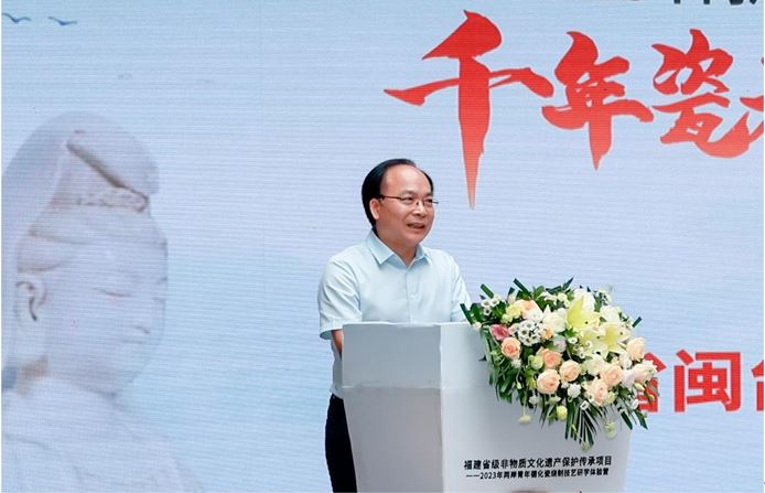 9月13日上午,由福建省文化和旅游厅主办,福建省闽台文化交流中心、泉州市文化广电和旅游局承办的福建省级非物质文化遗产保护传承项目——2023年两岸青年德化瓷烧制技艺在泉州德化正式开营,省文旅系统相关部门负责人、来自福建师范大学、华侨大学、福建艺术职业学院的闽台青年学子、新闻媒体近百人出席开营仪式。