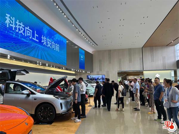 2023 海外華文傳媒合作組織廣東省高質量發展主題參訪調研團了解廣汽埃安銷售情況 。(點新聞記者帥誠 攝)