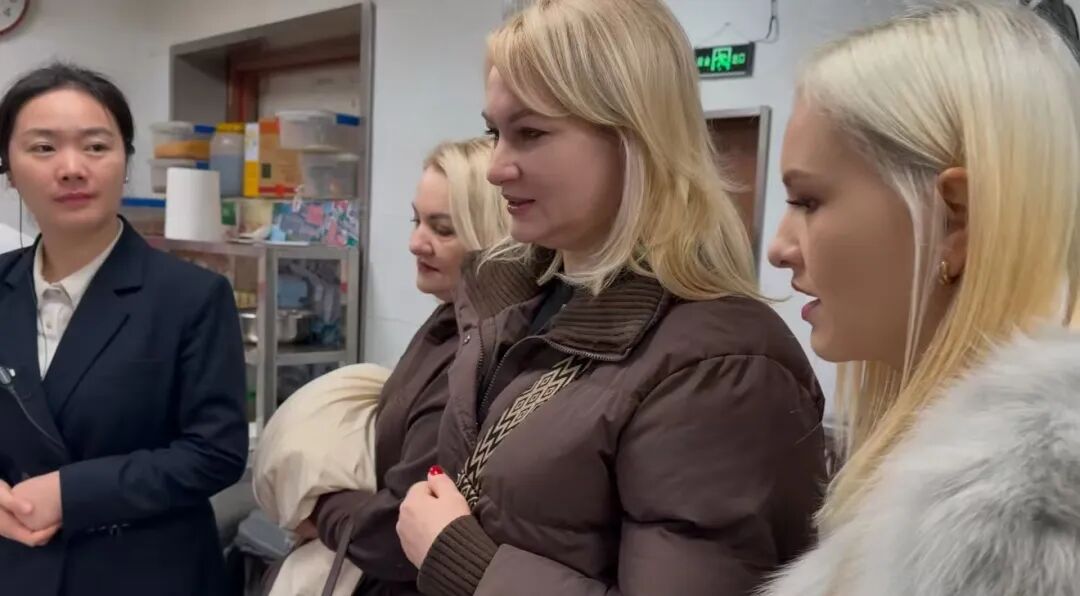 娜塔莎一行在清名桥饭店观摩头灶大厨师洪飞制作了无锡传统美食四喜面筋,了解了长江三鲜,品尝了无锡小笼包、无锡排骨、响油鳝糊、刀鱼、鲥鱼、渔满塘大闸蟹等美食。