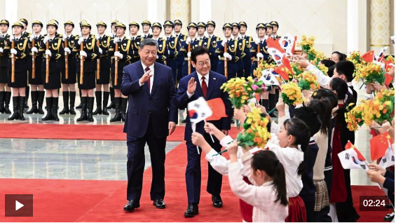 习近平向韩国人民致以诚挚新年祝福。习近平指出,我和李在明总统已两次见面并实现互访,体现了双方对中韩关系的重视。作为朋友和邻居,中韩应该多走动、常来往、勤沟通。中方始终将中韩关系置于周边外交重要位置,对韩政策保持连续性、稳定性。中方愿同韩方一道,牢牢把握友好合作方向,秉持互利共赢宗旨,推动中韩战略合作伙伴关系沿着健康轨道迈进,切实增进两国人民福祉,为地区乃至世界和平与发展正向赋能。