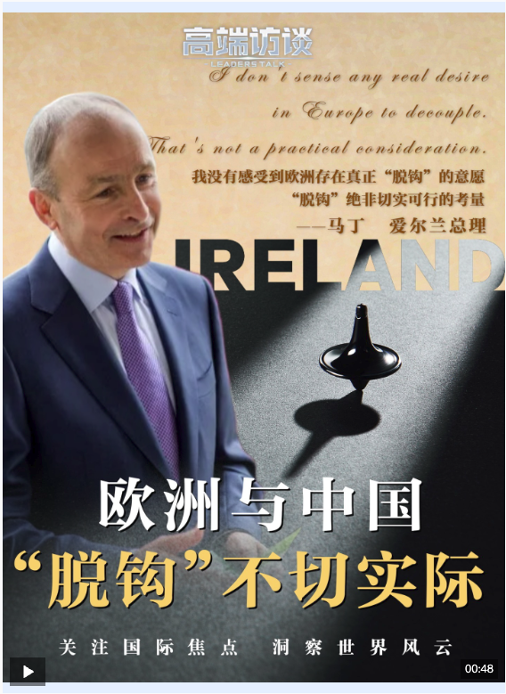 马丁在接受总台《高端访谈》专访时表示,欧洲与中国“‘脱钩’绝非切实可行的考量”。