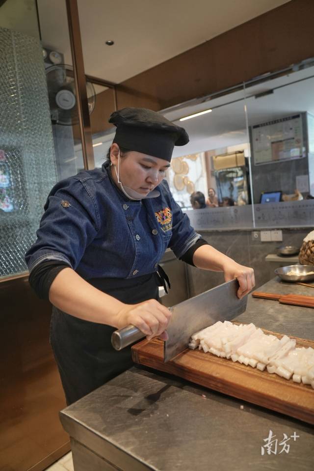 走进位于广州云台花园旁的沙河粉村,透过明厨亮灶,食客可以一窥沙河粉的制作全过程。