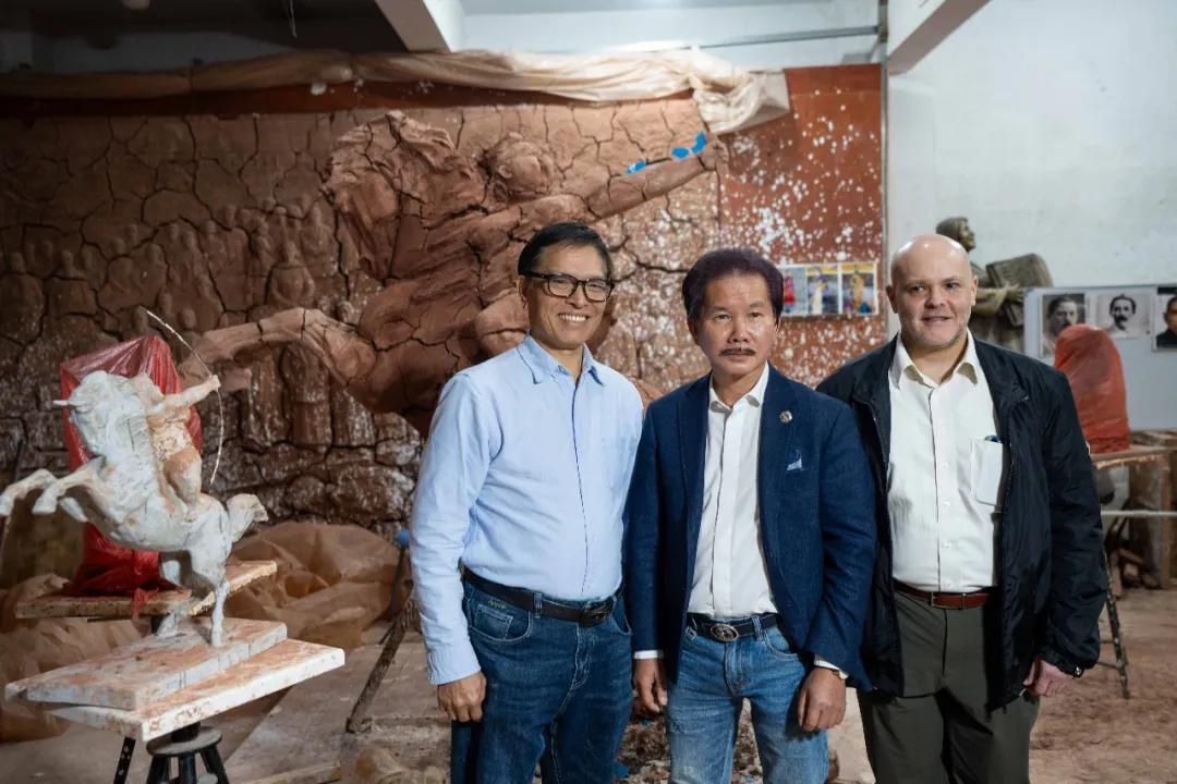 许鸿飞亲自引导参观并详细介绍了其工作室陈列的各类雕塑作品。从充满生命力的“肥女”系列到富有哲思的现代创作,许鸿飞向客人讲述每件作品背后的创作理念与艺术思考。此外,还分享了其举办雕塑世界巡展的丰富经历与深刻心得,特别提及在拉丁美洲多个国家展览时引起的热烈反响。