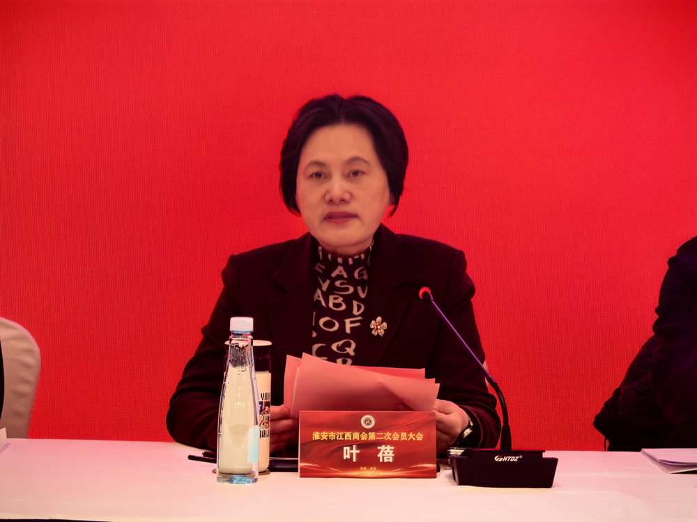 叶蓓在讲话中对淮安市江西商会自2020年成立以来,秉持服务宗旨, 商会党建、教育培训、会员服务、公益慈善等方面工作给予肯定。希望淮安市江西商会在新一届领导班子带领下,承继优良传统、勇担时代使命,奋力书写高质量发展新篇章。