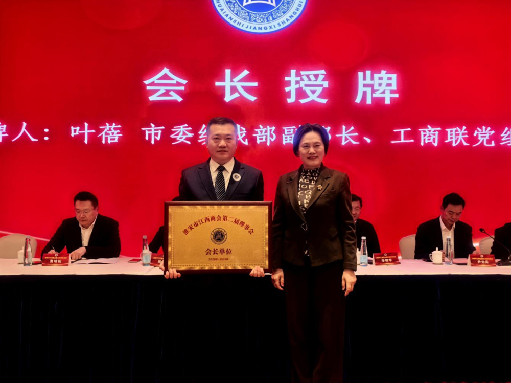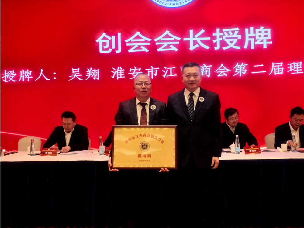 淮安市江西商会第二届理事会会长吴翔为创会会长授牌