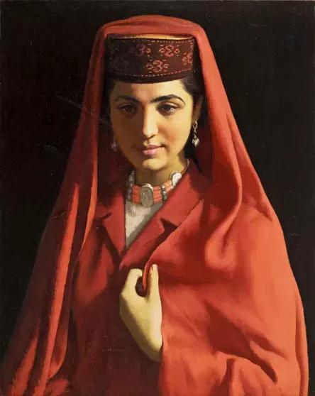 1981年末靳尚谊赴美探亲,在美国一年的时间里,他走遍了大大小小的艺术馆,这次美国之行,让靳尚谊意识到自己的油画“单薄、简单”——与欧洲油画作品相比,体积感的不足成为最大短板。回国后,他开始了古典技法的尝试,完成了经典之作《塔吉克新娘》。画面中,塔吉克新娘的笑意在侧光中晕染,单纯的线条与宁静的氛围,这幅画作被美术理论界誉为“中国油画新古典主义开山之作”。