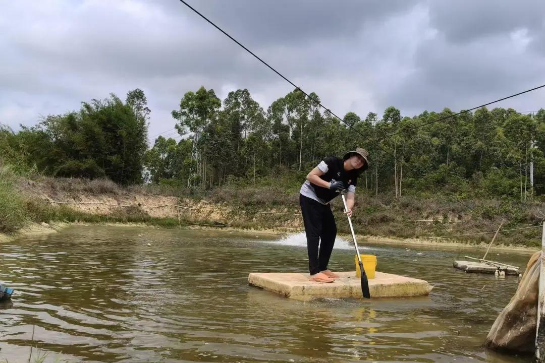 尽管虾塘雇佣了工人打理,梁家俊仍坚持每天顶着烈日跑虾塘,从虾苗培育、种植水草、施肥、喂饲料、培养有益菌等,每个环节都亲力亲为,有时还挽起裤腿下虾塘,满身淤泥。