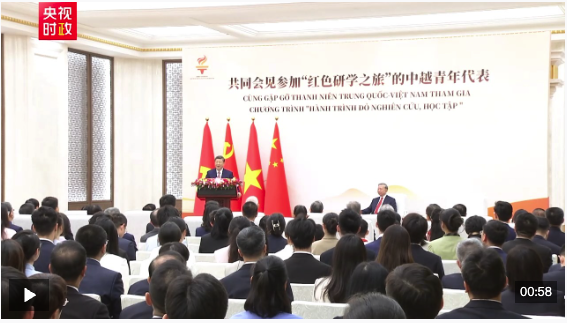 4月15日上午,中共中央总书记、国家主席习近平在人民大会堂同来华进行国事访问的越共中央总书记、国家主席苏林共同会见参加“红色研学之旅”的中越青年代表。