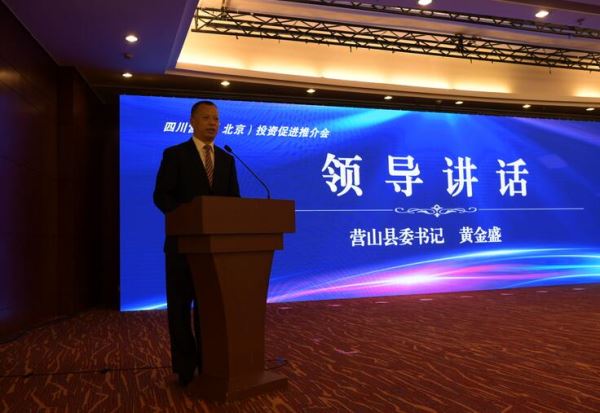 黄金盛代表营山县委、政府向参加推介会的嘉宾和乡友表示欢迎,向长期以来关心支持营山经济社会发展的各界人士表示感谢。他指出,近年来,营山县紧紧围绕中、省、市决策部署,坚持产业融合、生态宜居、文化铸魂,确立了建设有影响力的山水田园城市和川渝合作示范县的发展目标。坚持以产业作支撑,生态打底子,文化聚人心,大力推进一二三产业融合发展,坚定不移贯彻绿色发展理念,培育城市人文情怀,今天的营山,正立足川东北、面向成渝西,充分利用交通、城市面貌等的进一步改变,加快融入成渝发展,力争在成渝城市群中展现作为。