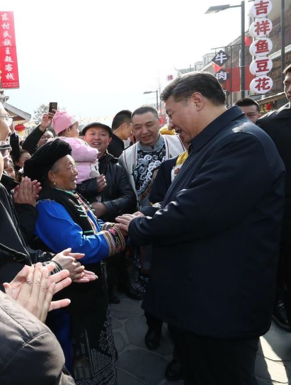 Xi’s inspection tour was broadcasted live and reported timely on new media channels. In three days, at least 12 short videos about Xi’s inspection tour were released by China Central Television. In a video, when Xi was having a conversation with the villagers about poverty alleviation, he said, “Not a single ethnic group, family or person should be left behind.” This sentence also went viral online with the video.