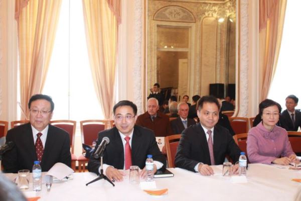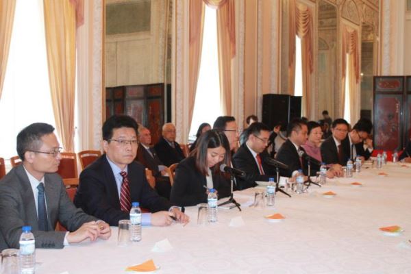 (从左至右:郝平团长、蔡润大使、许志达参赞、韩晓燕参赞)
