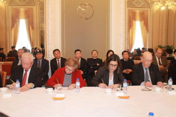 “中国共产党和中国人民从苦难中走过来,深知和平的珍贵、发展的价值。中国人民自信自尊,将坚定维护国家主权、安全、发展利益,同时将同各国人民一道,积极推动构建人类命运共同体,不断为人类和平与发展的崇高事业作出新的更大的贡献”。最后,郝平团长以习近平总书记在十九届中共中央政治局常委同中外记者见面时的这一段话来结束主题演讲。