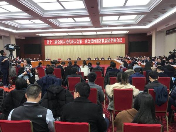 第十三届全国人民代表大会第一次会议四川省代表团全体会议现场
