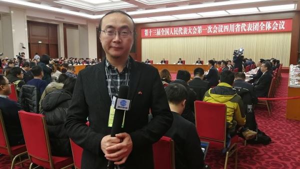 北欧国际新闻中心秘书长、北欧华人报社副总编刘继明在第十三届全国人民代表大会第一次会议四川省代表团全体会议现场