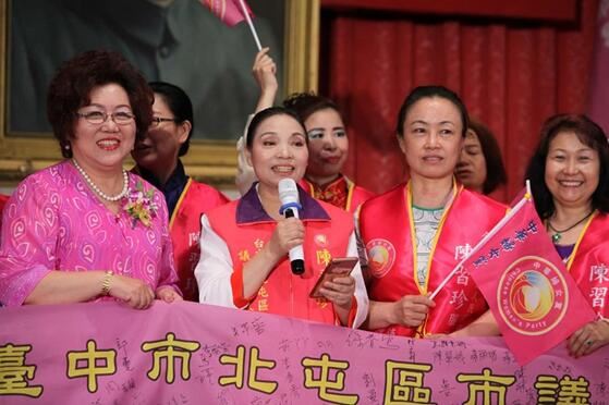 台湾中华妇女党中央执行委员/台中市北屯区议员参选人陈习珍(左二)