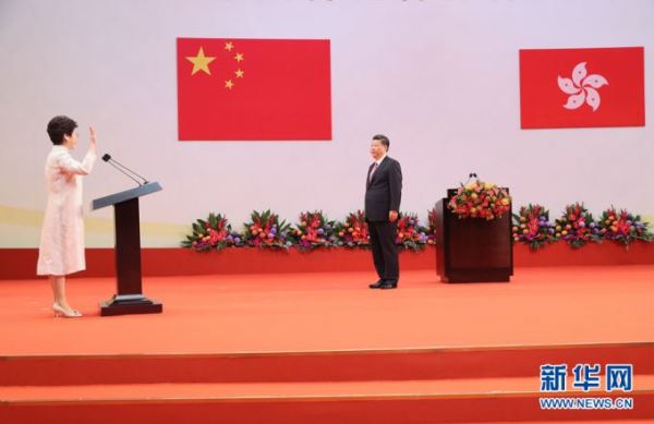△资料照片:2017年7月1日,习近平监誓,香港特别行政区第五任行政长官林郑月娥宣誓就职