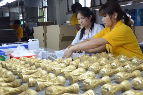 图:广东省政府根据国台办惠台政策制订落实措施,获得台商积极肯定。图为广东台资企业工人检测产品 资料图片