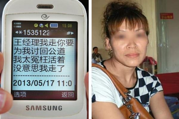 2013年5月16日,38岁的保洁员王成英被雇主怀疑拿走价值11万元的钻戒。5月17日中午,在留下一条“我太冤枉”的短信后,王成英跳河自杀,用生命来证明自己的清白。