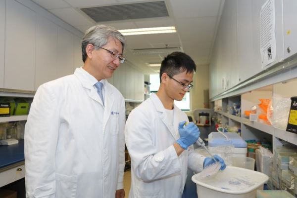 图:粤港澳大湾区的发展,将为香港研究人员提供新发展机遇。图为香港浸会大学协理副校长卞兆祥(左)在指导学生进行科学实验 资料图片