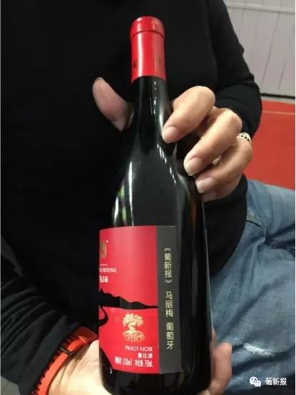 (贺东庄园庄主龚杰睿智热情,给采访团定制了葡萄酒,他还表示,今日是个好日子,五湖四海的朋友欢聚一起,值得庆祝,拿出了一瓶150年老藤酒,以尽情谊。)