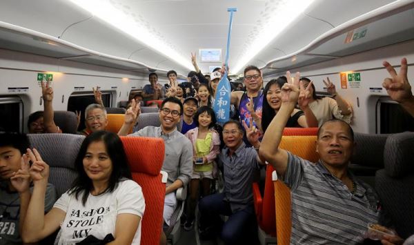 图:首班列车G5736今早七时开往深圳北,乘客们在车厢内兴奋等待出发