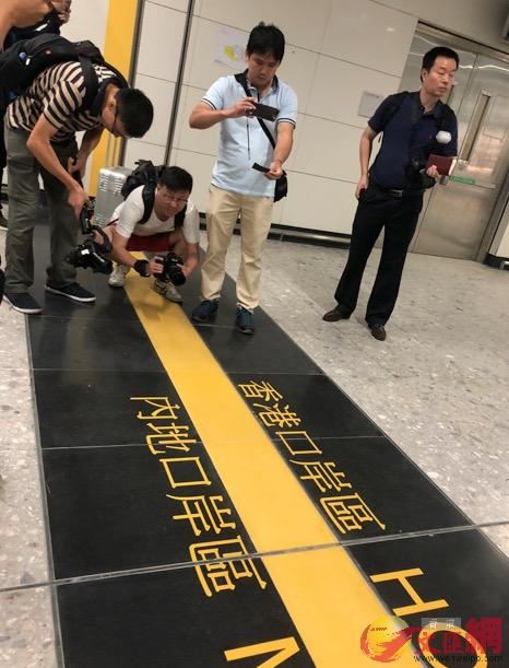 【文匯網訊】(大公文匯全媒體記者 方俊明)廣深港高鐵在西九龍站實施「一地兩檢」,在站內設香港口岸和內地口岸的分界區,而地上一道醒目的黃色線,成為分界標誌,也成了廣深港高鐵全線通車首日眾多旅客的「打卡」熱點。據了解,內地口岸與香港口岸的工作人員以此線為界,在西九龍站內開展各自工作。
