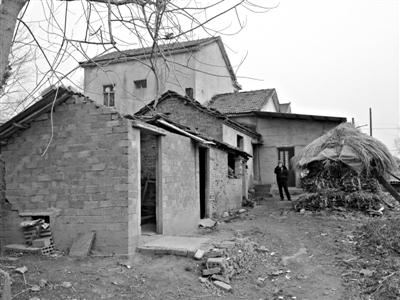 小闯自缢的厕所。厕所的屋顶和横梁已被拆除,横梁在1月23日小闯下葬后被焚烧掉了。