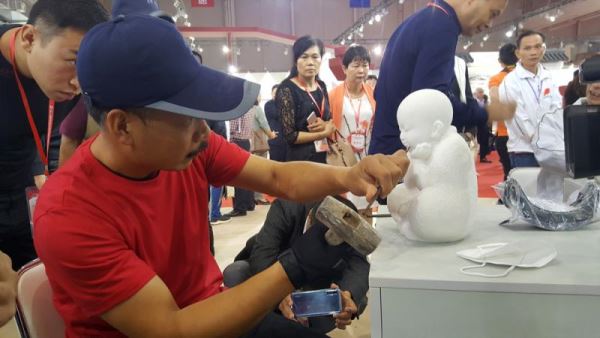 据了解,本次参展石艺作品200多件,经过评选,展出120多件,涵盖玉雕、石艺、端砚等非遗传统美术及石刻等类别工艺。其中,云浮石艺代表性传承人梁建坤的一碗“老高猪杂粉”以假乱真,技惊四座,引来一片叫好声。记者看到,碗中的河粉、汤水、肉、粉肠、大肠、肝、蛋等材料,活灵活现。而由一班石艺技校师徒製作的“人生旅途”作品亦十分抢眼,一个上世纪70年代的人革旅行包,装满了童年的回忆,利用石料的天然色泽,经过特殊的打磨抛光,呈现出纯黑的“皮”质,拉链及带扣等“金属”质在粗磨后,呈现出自然的发白效果,几可乱真。 (记者 方俊明)