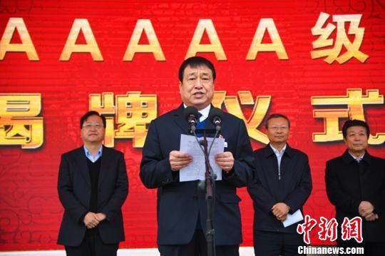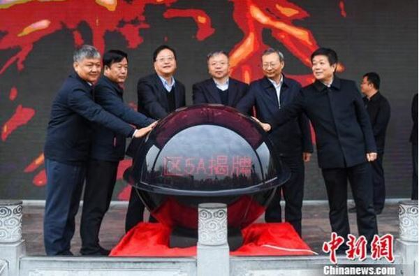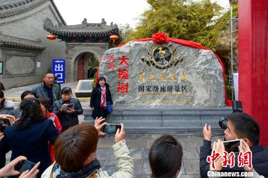 中新网临汾11月16日电 (刘小红)16日,“华人老家”山西洪洞大槐树寻根祭祖园晋升国家5A级旅游景区揭牌仪式在景区根雕大门举行。现场锣鼓喧天,热闹非凡。