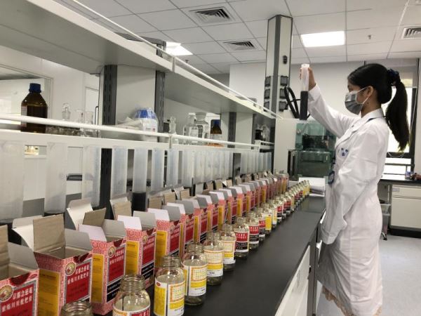 图:藥检所工作人员对香港品牌的枇杷膏进行检验/大公报记者方俊明摄