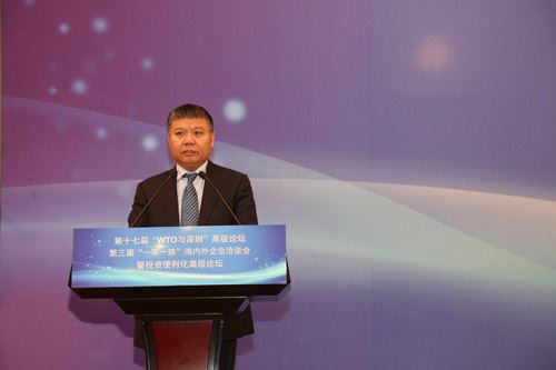 深圳市经济贸易和信息化委员会主任贾兴东先生主持了论坛的开幕仪式,深圳市人民政府副市长王立新先生、海关总署研究中心副主任汤维洪先生到会致辞。中国首任常驻世界贸易组织代表团大使、中国世贸组织研究会会长孙振宇先生、深圳市委常委、中国(广东)自由贸易试验区深圳前海蛇口片区管理委员会副主任王焱侠女士发表主旨演讲。