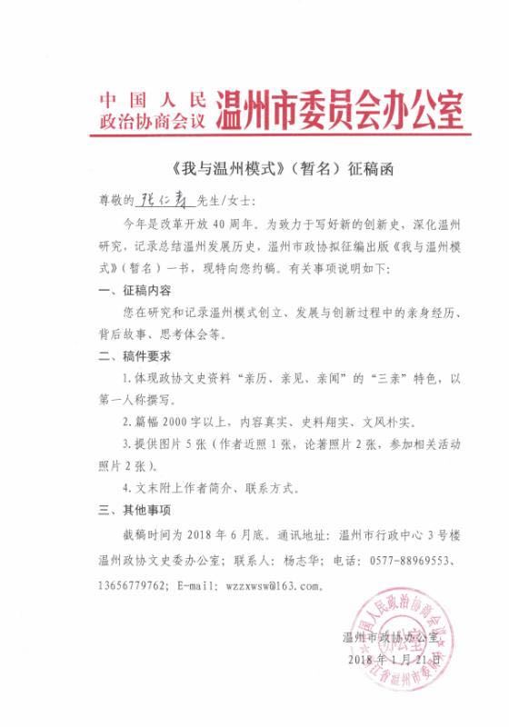 我在《温州模式研究》(中国社会科学出版社1990年1月版)一书前言中这样写道:“1985年春天,我们踏上了温州这块土地。从那以后,温州农村独特、丰富、深刻的变革,像巨大的磁石,有力地吸引了我们。”同时,温州广大老百姓和干部“敢为天下先”的改革精神和探索勇气,也强烈地鼓舞了我,给我以激情和力量。在我的职业生涯中,先后主持过大大小小的研究课题不下20项,但取得研究成果最多、自认为有点价值的,首推“温州模式研究”。今天在撰写此文的过程中,我仍然对故乡温州这一方改革创新热土,对广大父老乡亲的开拓创新精神、所创造的辉煌业绩和丰富经验,怀着一颗钦佩和感恩的心!