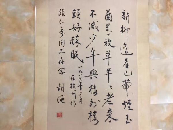(4)陪同胡绳院长赴温州考察。1987年3月,时任中共中央党史研究室主任、中国社会科学院院长的胡绳先生要到温州考察,省社科院领导让我一起陪同访问。胡绳院长这次考察只带了他的秘书和儿媳,在温州考察时间大约六七天。他温和宽厚,平易近人,一路上看得仔细,听得认真,但说话不多,很少发表对温州模式的看法。作为理论界的一位权威,他专程赴温州考察有什么目的,带着什么任务,我不得而知也不好发问。当时有一个重要背景是:1987年1月28日,中共中央发出《关于当前反对资产阶级自由化若干问题的通知》,这场“斗争”正在开展之中。在杭州临别前夕,先生在下榻的西湖国宾馆,给每一个陪同人员都用毛笔写诗相赠,送给我的是:“新柳遥看已带烟,玉兰花放草芊芊。老来不减少年兴,楼外楼头好醉眠。” 这最后两句,或许也是他当时心境的一种写照吧!