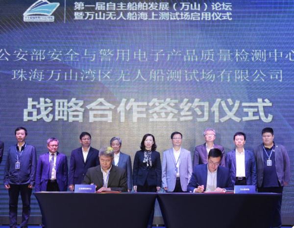 论坛上,万山无人船海上测试场还与公安部安全与警用电子产品质量检测中心、交通运输部南海航海保障中心等签署战略合作协议。同时,由中国船级社、交通部、中国船舶重工集团等12家单位联合发起的中国无人船产业创新发展联盟正式成立。