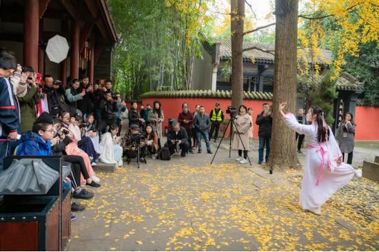 中新网四川新闻12月5日电 (邹立杨)成都市武侯区摄影家协会、武侯区摄影家协会金花中学分会近日联合武侯祠博物馆举办了一场摄影公益游学活动。成都市金花中学摄影班的同学们挂着相机,身着传统汉服,青春洋溢,游走在古迹间,点亮武侯祠。