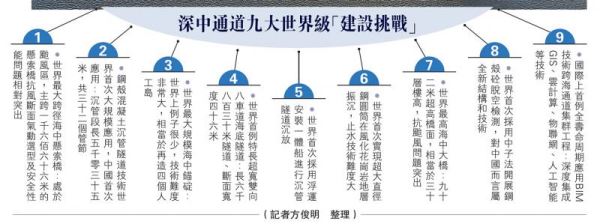 作为“深莞惠”与“珠中江”两大城市群间唯一公路直连通道,广东自贸区、粤港澳大湾区之间的交通纽带,深中通道目前桥、岛、隧工程均已开工。记者近日走访深中通道管理中心及施工现场了解到,该工程总投资约446.9亿元人民币,面临至少9大世界级“建设挑战”,其中海底隧道以“特长超宽双向八车道”标准超过港珠澳大桥成为世界首例。按工期,2019年上半年将完成首节沉管安装,2022年隧道贯通,2023年主体工程竣工,预计2024年全线通车。