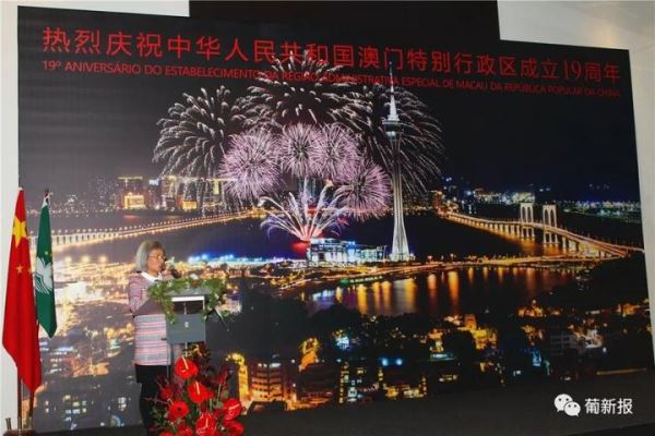 12月17日,澳门驻里斯本经济贸易办事处举办了庆祝澳门回归19周年酒会,中华人民共和国驻葡萄牙大使蔡润,葡萄牙共和国议会代表、副主席Teresa Caeiro女士,葡萄牙共和国亚速尔自治区代表Pedro Catarino大使,葡萄牙中华总商会蔡文显会长和夫人冯妙玲女士、华人华侨、澳门留学生代表出席了庆祝酒会。