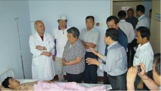 马占波院长向全国道德模范林秀珍及衡水好人网的负责人介绍刘朝帅治疗的情况