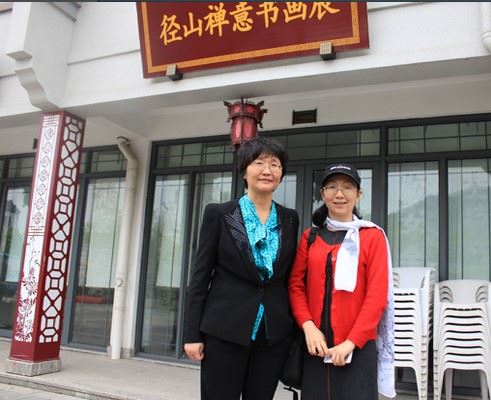 国侨办国外司司长王晓萍和径山禅意书画展策展人、八爪渔艺术工作室负责人于天竹合影。