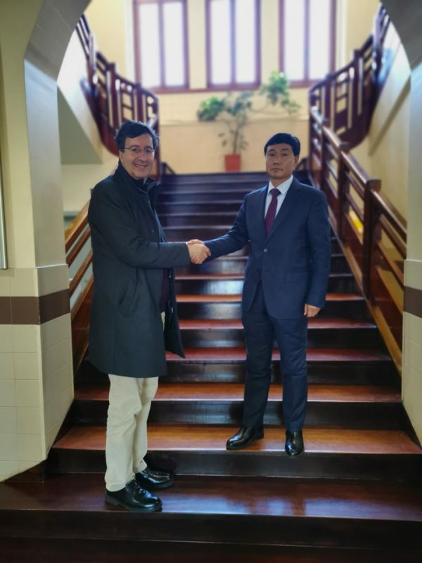 应葡萄牙维塞乌理工学院Paiva校长的邀请,邯郸科实中等专业学校校长张玺、党支部书记高志远等代表从中国远道而来,上午十一点,来了维塞乌理工学院。Paiva校长和国际事务部主席Paulo Costeira教授带领张玺校长等人参观了该校,详细讲解了维塞乌理工学院的教学模式及教学设施,并介绍了中国留学生在葡学习、生活情况等。