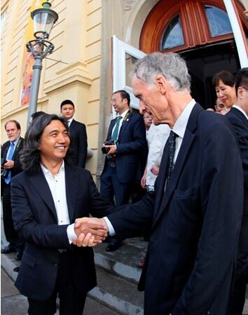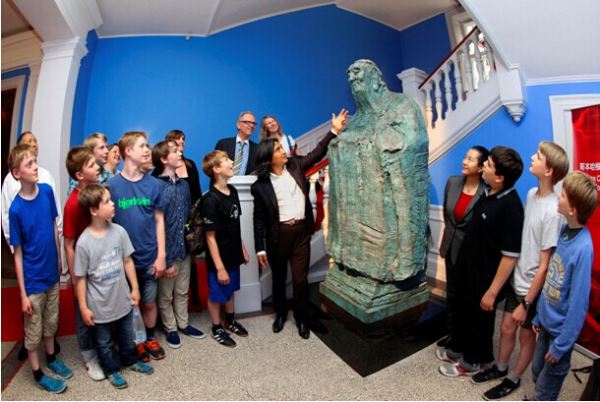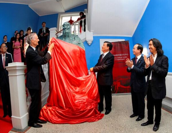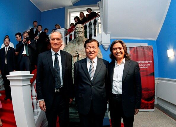 6月11日,中共中央政治局常委、中央书记处书记刘云山与丹麦第一副议长哈德在哥本哈根中国文化中心为《孔子》铜像雕塑作品揭幕。陪同出席揭幕仪式的有中共中央组织部常务副部长陈希,中华人民共和国文化部副部长丁伟,丹麦文化大臣耶维德,雕塑艺术家吴为山等。